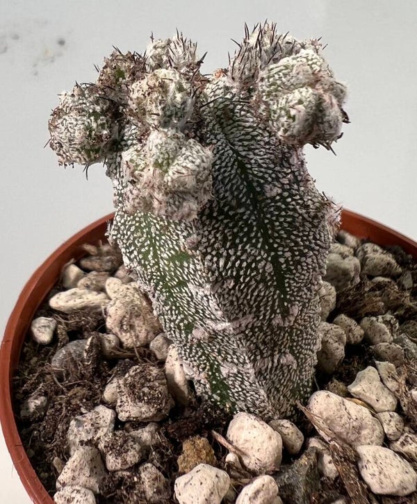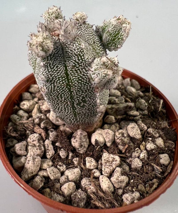 Astrophytum, de sterren van de woestijn. Bewonder hun opvallende gelijkenis met sterren en hun vermogen om water op te slaan in hun lichaam, waardoor ze stralen in zelfs de meest dorre omgevingen.