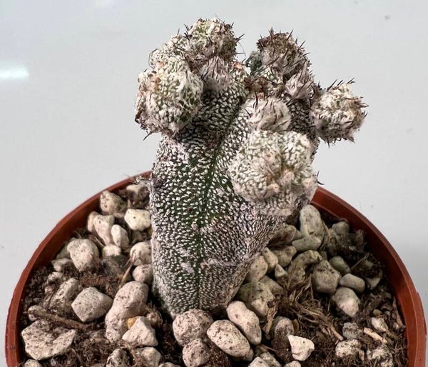 Een intrigerend feit over Astrophytum myriostigma cv Huboki is dat het een cultivar is die gekend is voor zijn onderscheidende uiterlijk met witte vlekken op de stengel. Deze witte vlekken lijken op sneeuwvlokken, wat bijdraagt aan zijn aantrekkelijkheid.