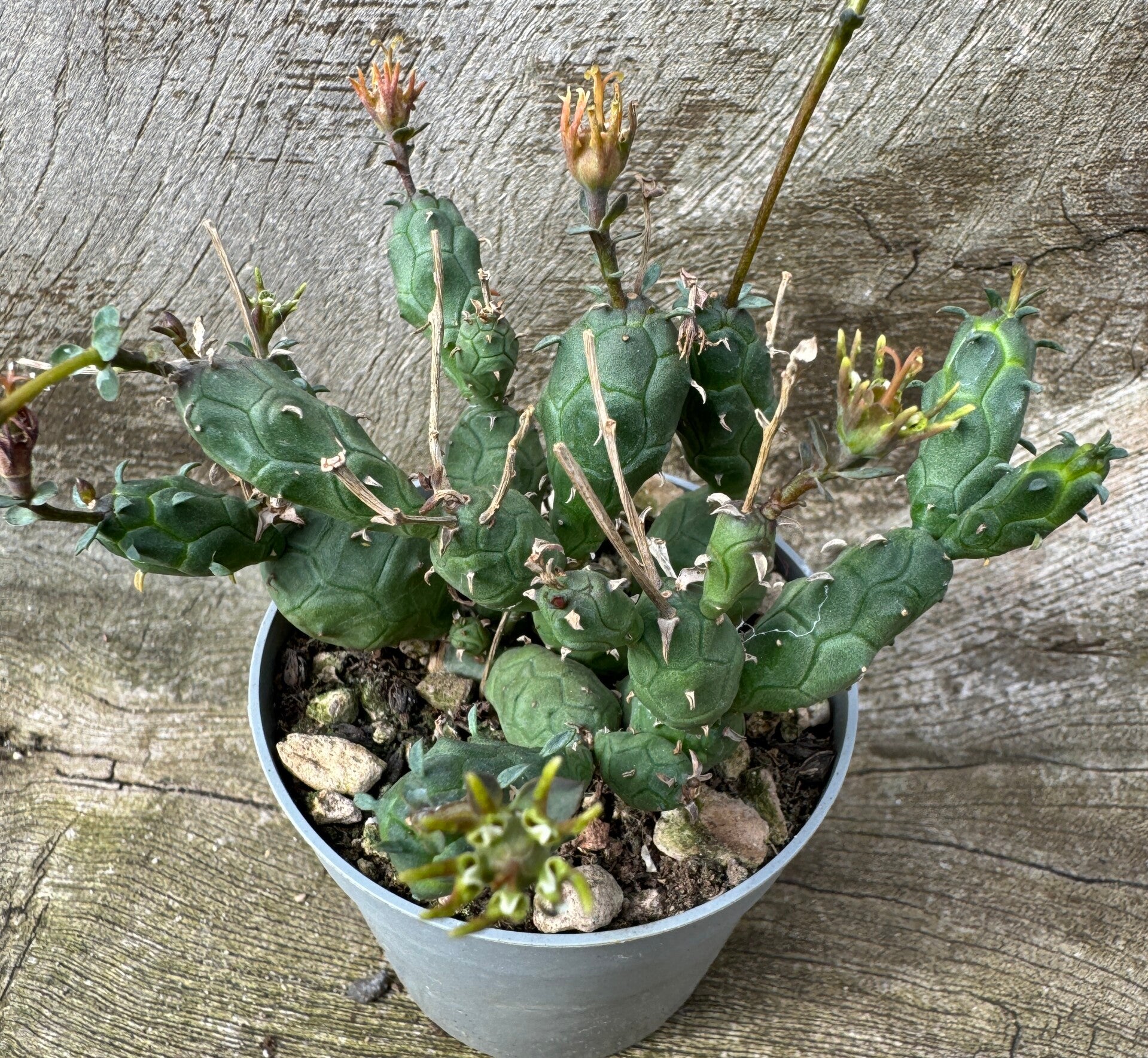 Ontmoet Euphorbia, de veelzijdige wereldreiziger met een fascinerende lookalike van de woestijn. Bewonder hun diverse vormen en aanpassingsvermogen aan uiteenlopende klimaten, van verzengende hitte tot gematigde streken. Hoewel ze op het eerste gezicht sterk lijken op cactussen, behoren ze tot een geheel andere plantenfamilie. Bewapend met stekels en met een eigen uniek karakter, zijn het waarlijk bijzondere overlevingskunstenaars