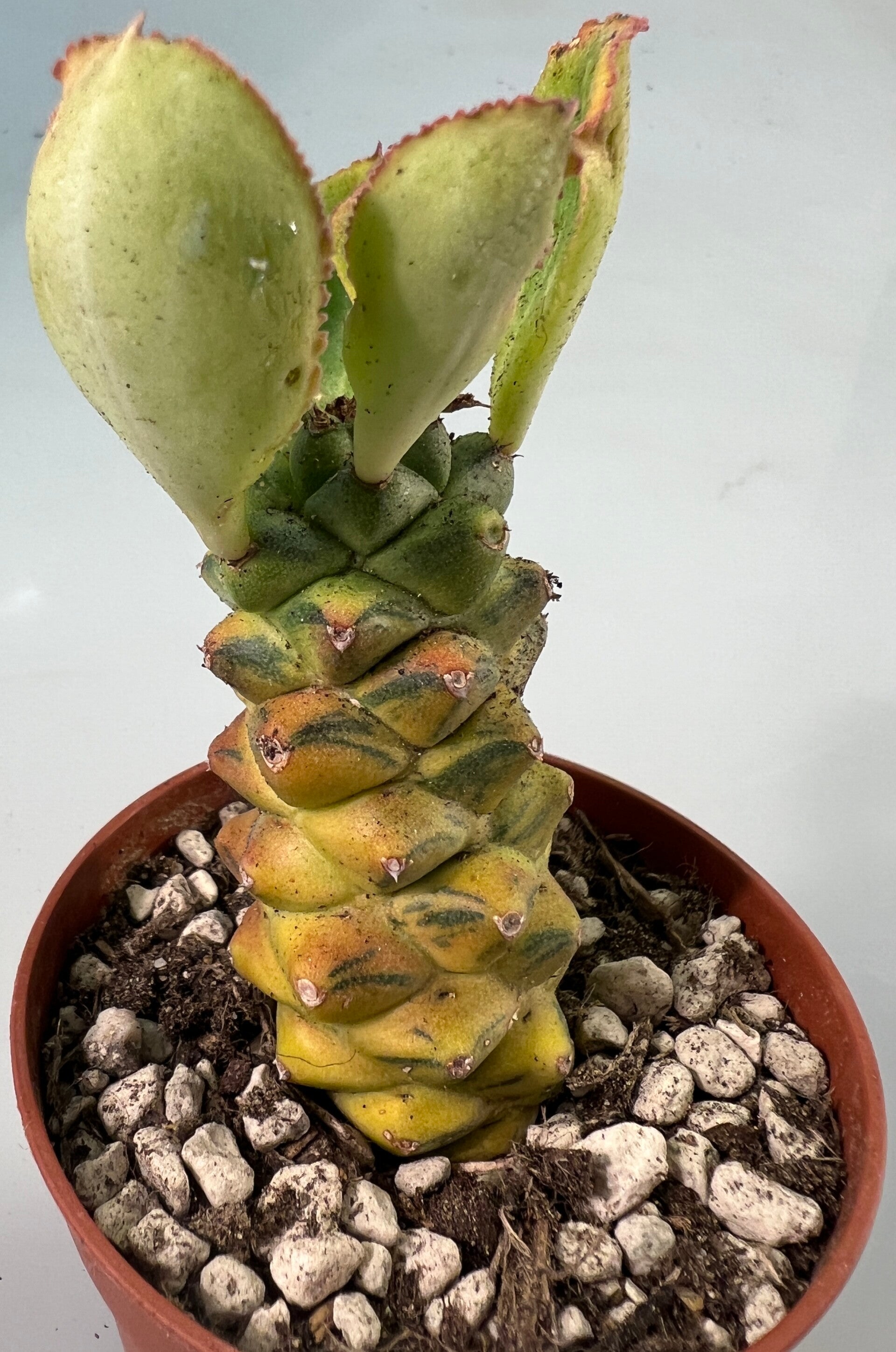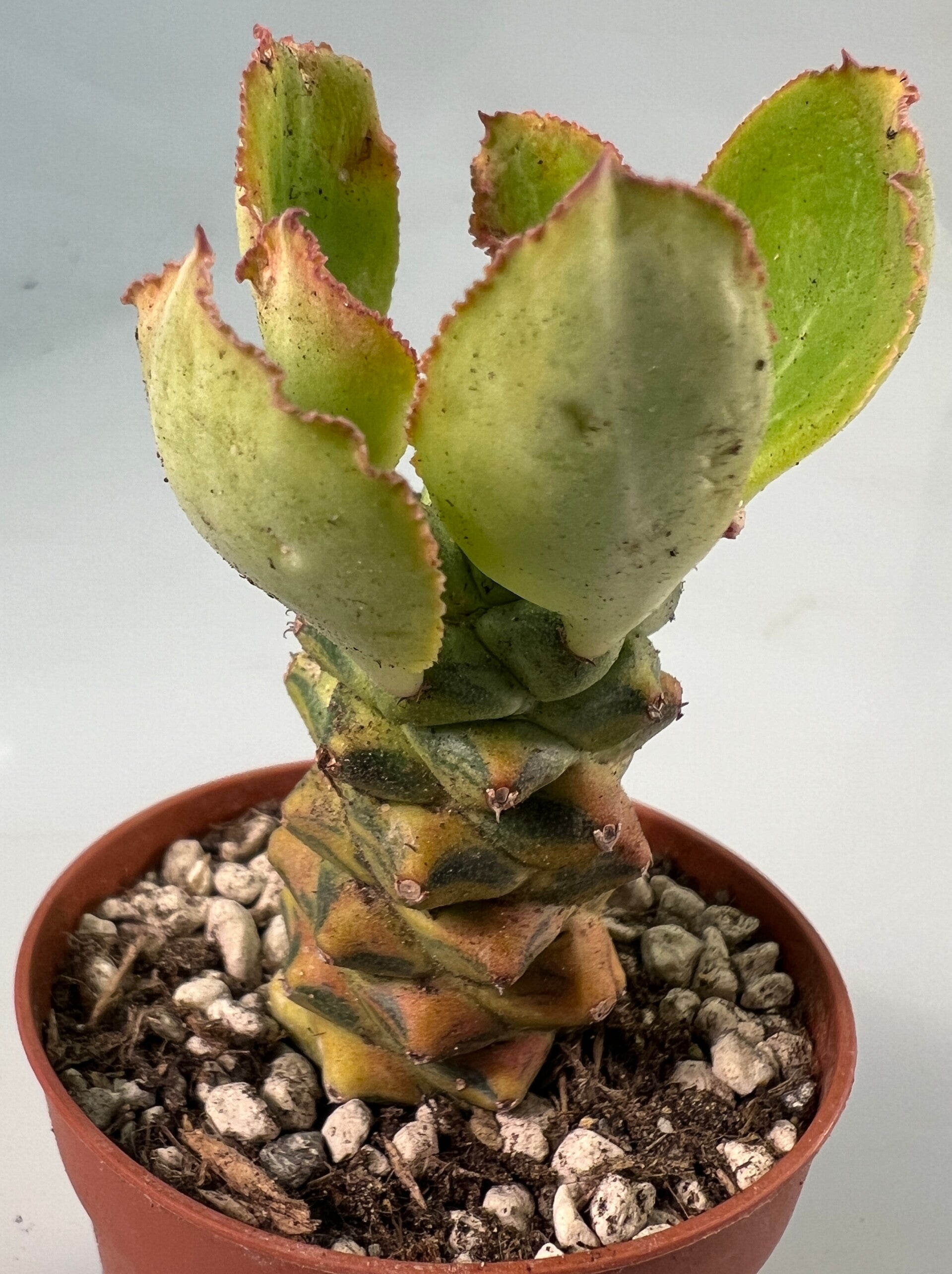 Het gaat hier om een schitterende variegated variant van de Monadenium Ritchiei.