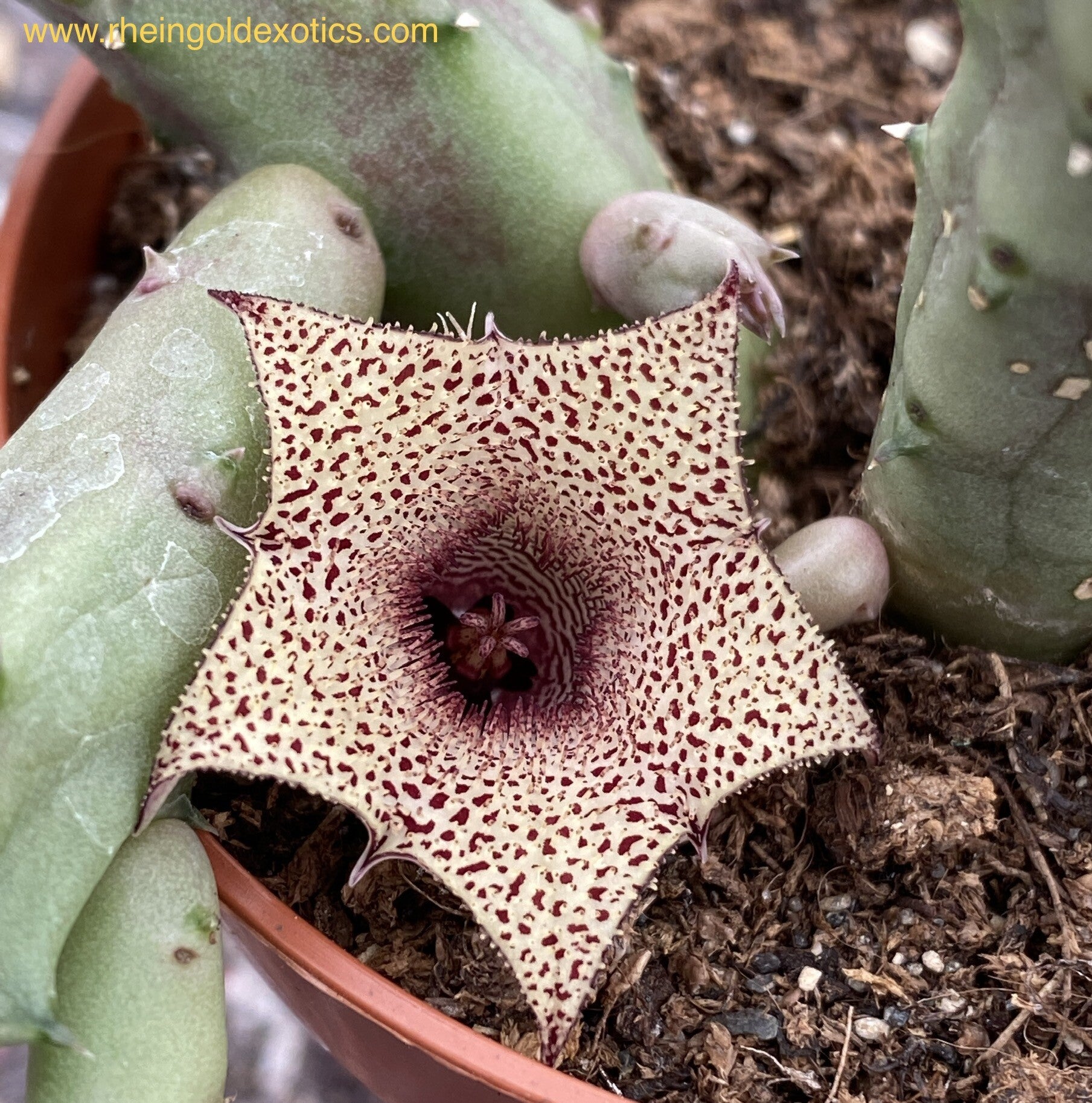 • Groeiperiode: Huernia erinacea heeft zijn actieve groeiperiode voornamelijk in het voorjaar en de zomer.